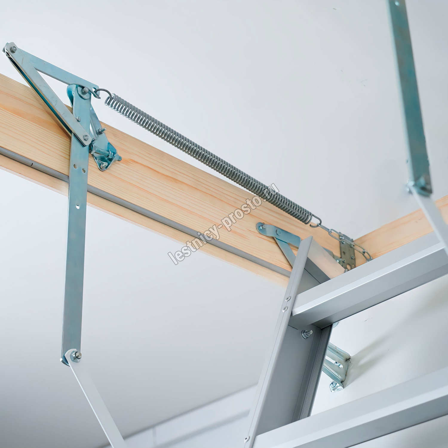 Лестница чердачная складная алюминиевая 3-х секционная. Ступени полностью выполнены из алюминия.