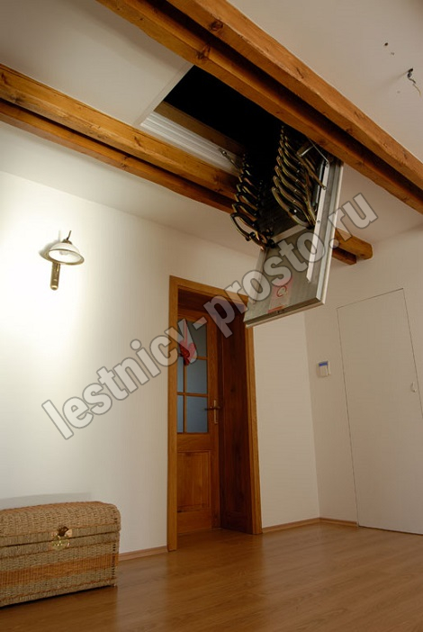 Лестница чердачная, раздвижная, ножничного типа.
