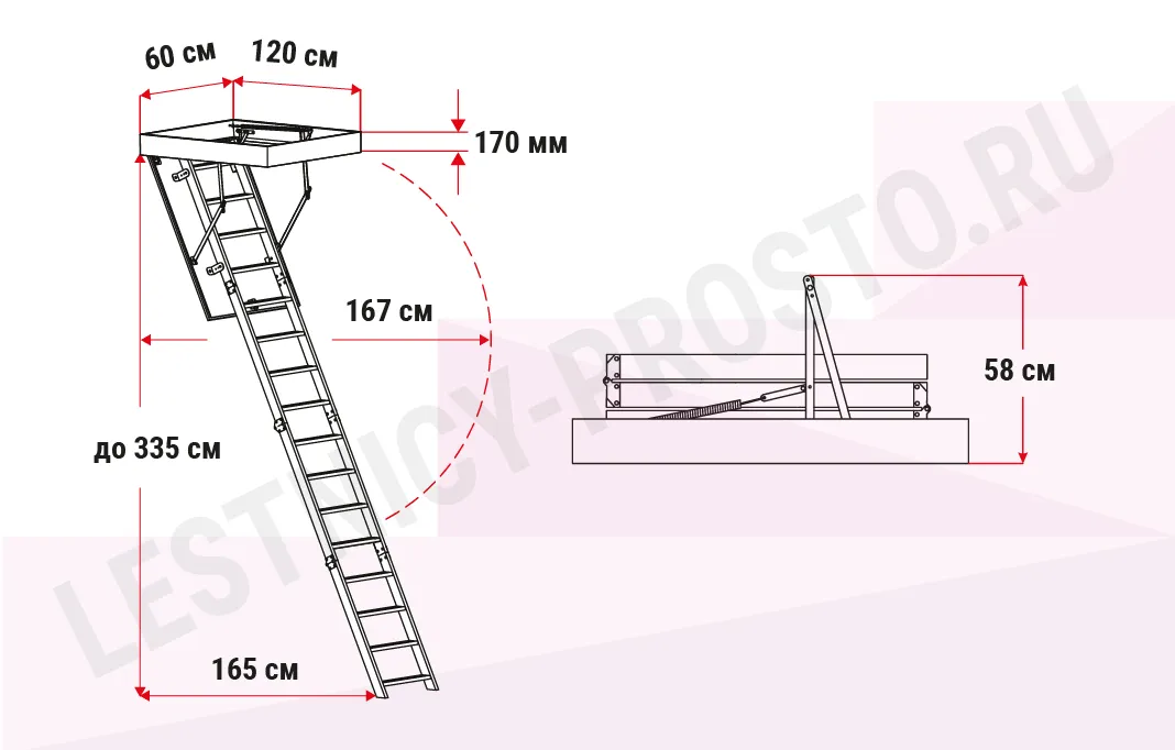 Чердачная лестница с люком OMAN POLAR LONG 60х120 см, h-330 см