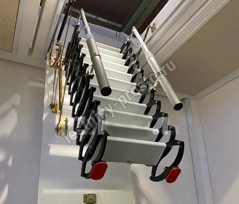 Ступени лестницы – из алюминия (белого цвета). Размер ступени 38х14 см
