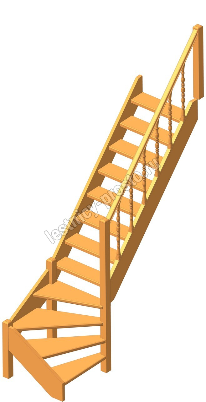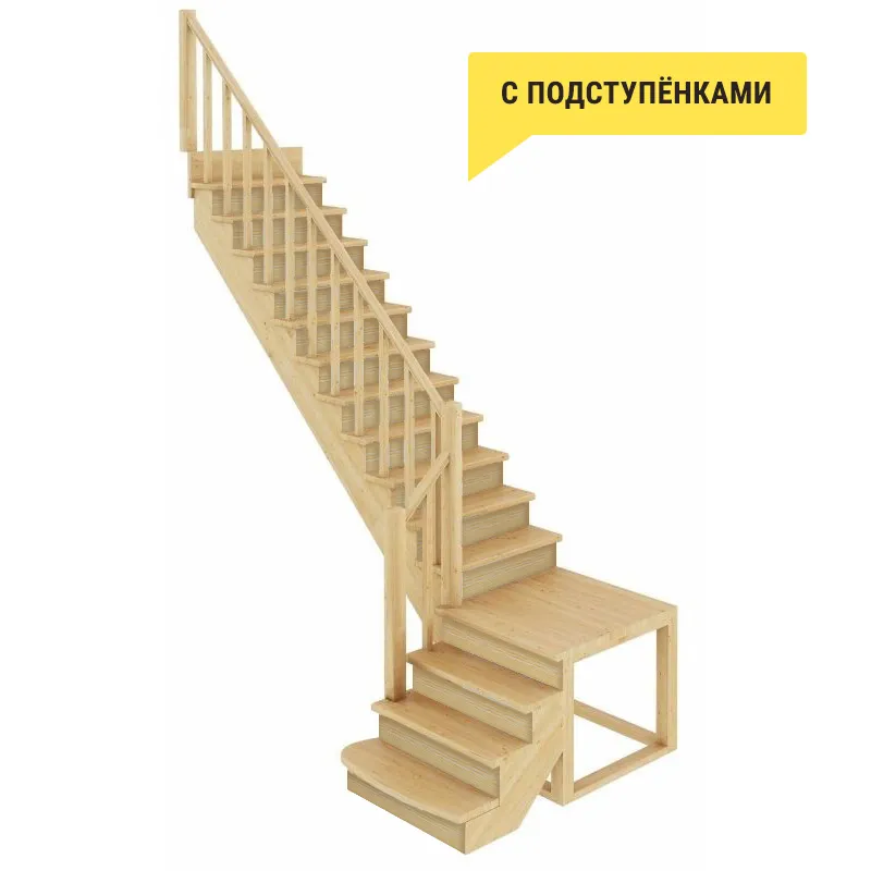 Деревянная межэтажная лестница ЛЕС-07 2470-2675 проем 2360-830, Сосна