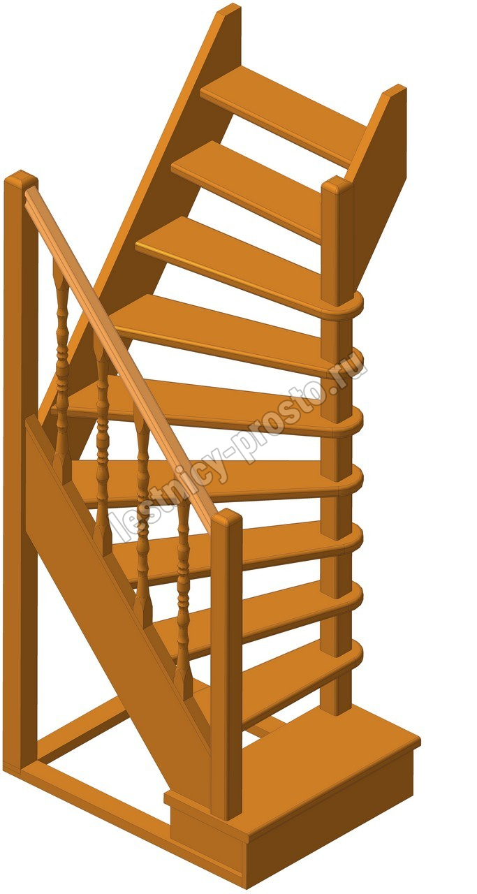 Деревянная межэтажная лестница ЛЕС-91 2250-2475 проем 1090-780, Сосна