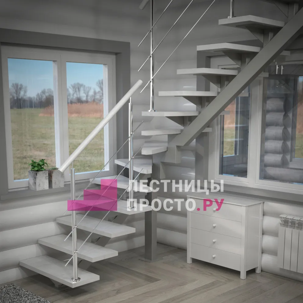 Деревянная межэтажная лестница ЛЕС-91 2700-2925 проем 1220-780, Лиственница