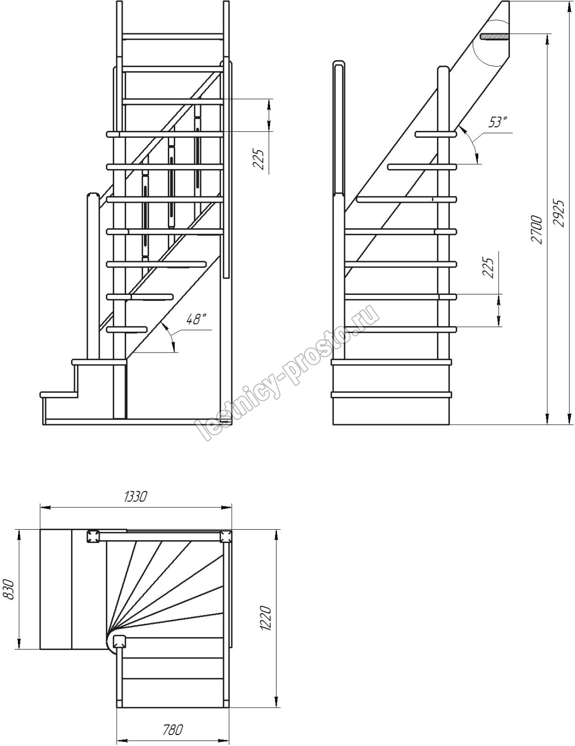 Высота лестницы 2700 - 2925 мм