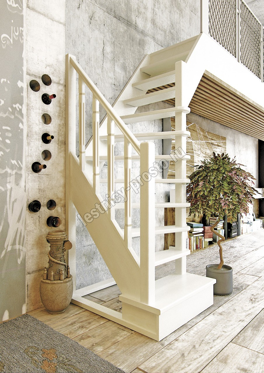 Деревянная межэтажная лестница ЛЕС-91 2700-2925 проем 1220-780, Сосна