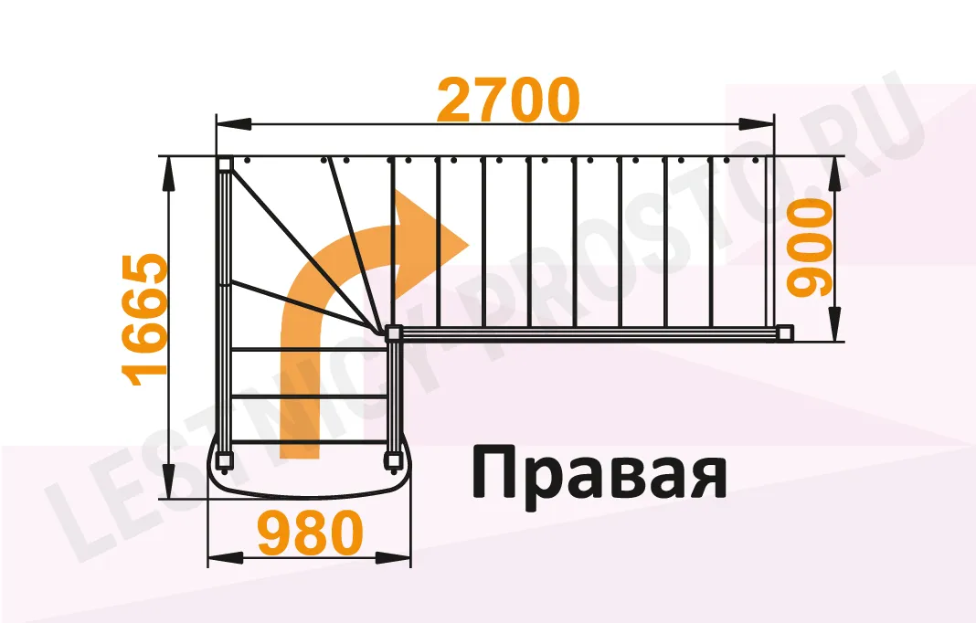 Базовый комплект включает в себя элементы лестницы и ограждения без какого-либо покрытия.