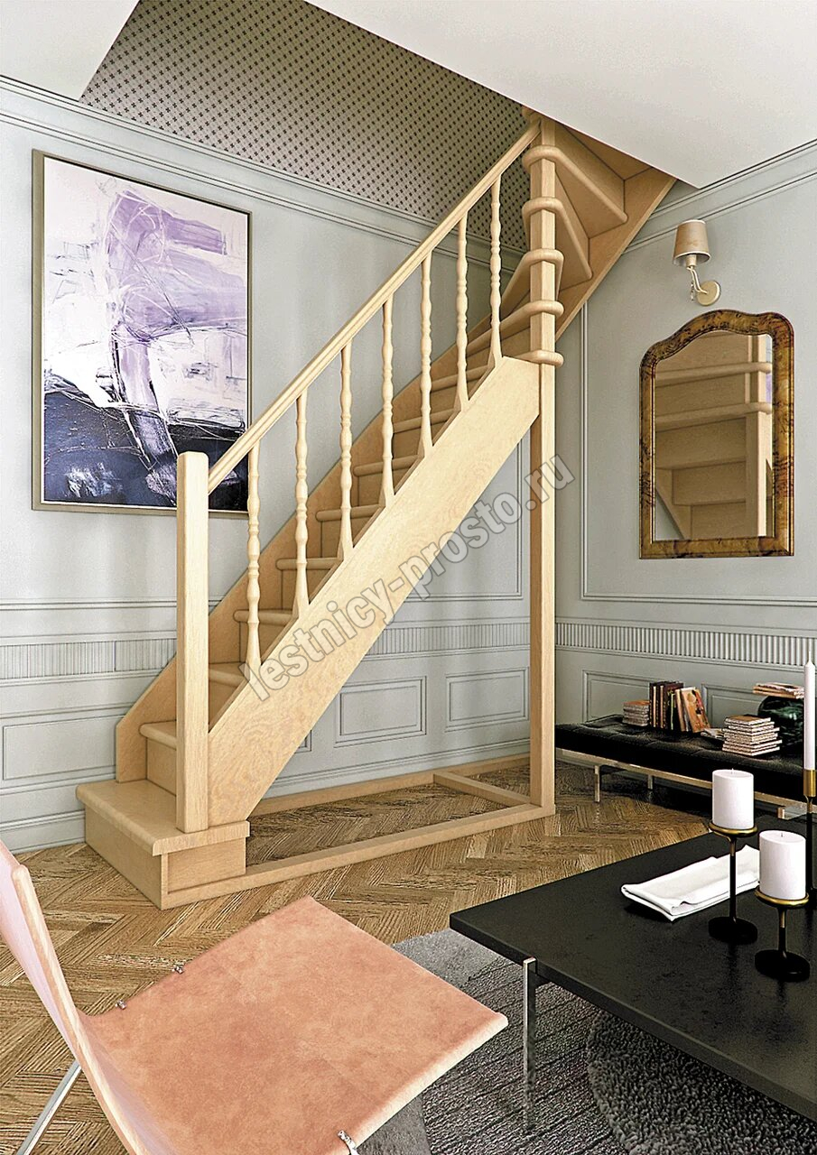 Лестница поставляется в разобранном виде. Базовый комплект включает в себя деревянные элементы лестницы и ограждения без какого-либо покрытия. Вы можете заказать у нас покраску лестницы в цвета, отвечающие особенностям вашего помещения.