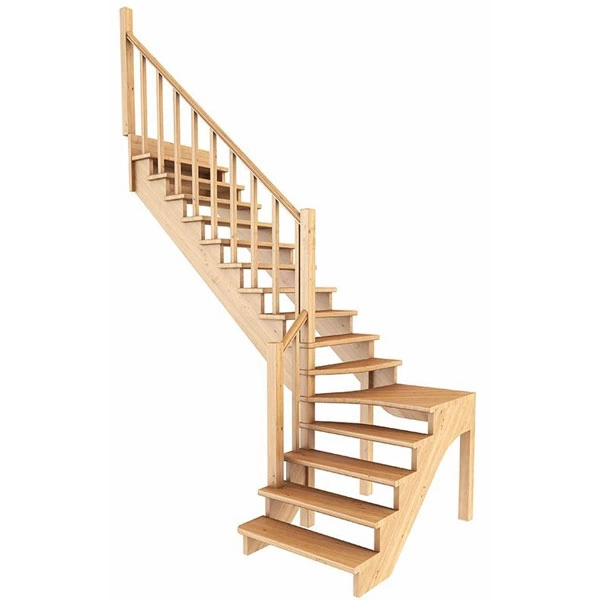 Ступени и поручень лестницы выполнены из бука, остальные элементы из сосны. Возможно изготовление данной модели полностью из бука. Базовый комплект включает в себя деревянные элементы лестницы и ограждения без какого-либо покрытия.