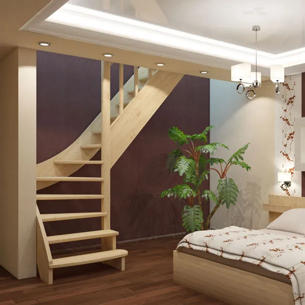 Ступени и поручень лестницы изготовлены из бука, остальные элементы из сосны.