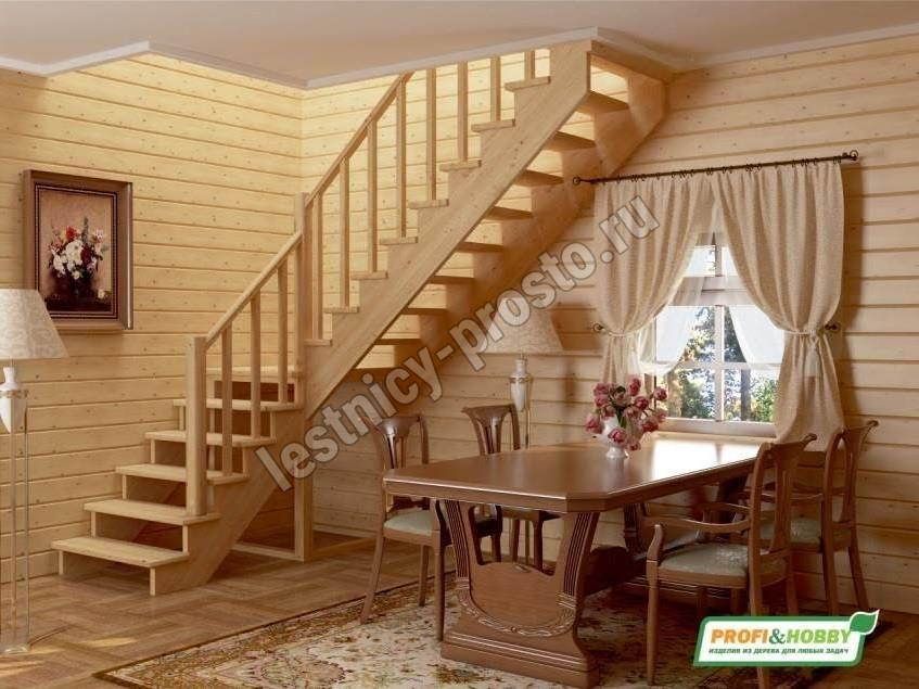 Ступени и поручень лестницы изготовлены из дуба, остальные элементы из сосны.