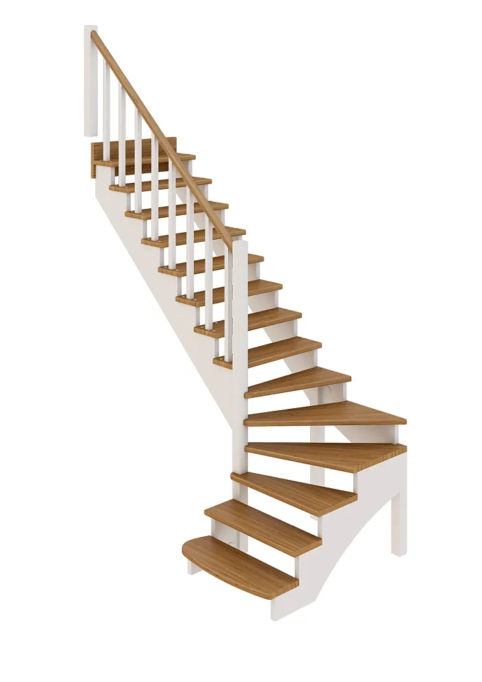 Базовый комплект включает в себя деревянные элементы лестницы и ограждения без какого-либо покрытия.