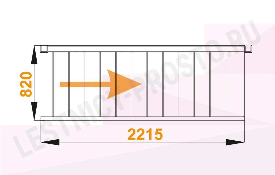 Схема лестницы ЛС-10М с ограждением установленным справа