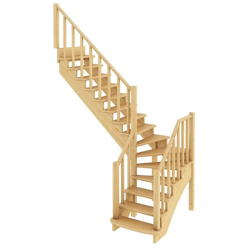 Базовый комплект включает в себя деревянные элементы лестницы и ограждения без какого-либо покрытия.