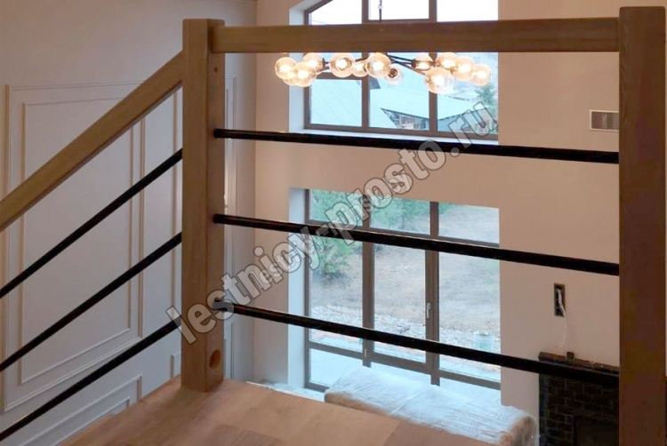 В комплекте: столбы и профильный поручень из бука без какого-либо покрытия, комплект из 3 стальных ригелей (окрашены в цвет каркаса или хром по желанию) диаметром 12 мм. Вы можете заказать у нас предварительную профессиональную покраску деревянных элементов в любой цвет.