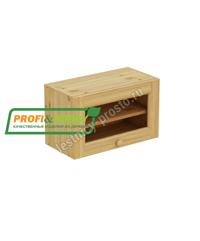 Шкаф-антресоль навесной 600 х 300 х 360, под стекло, сосна, бесцветный акриловый лак