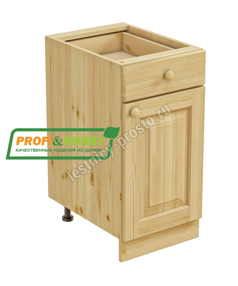 Тумба 1 дверь, 1 ящик 400 х 560 х 720 сосна, бесцветный акриловый лак
