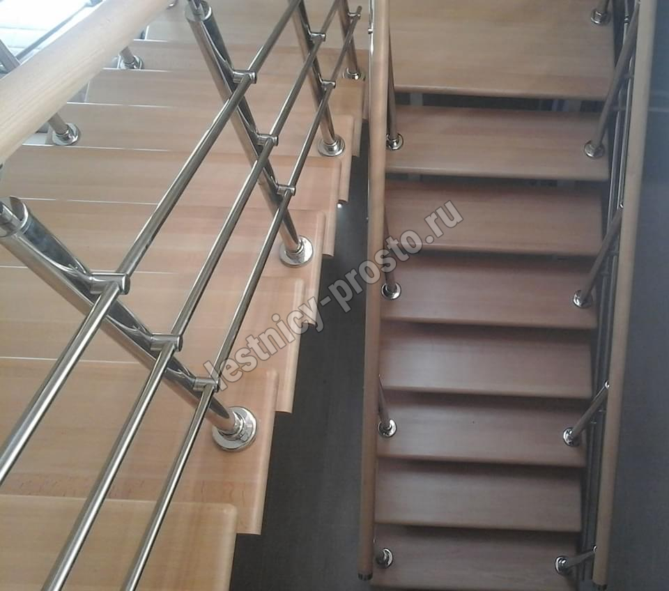 Основой лестницы Prosto Double 50×100 служит усиленный двойной металлический каркас из профильной трубы 50×100 мм (включая 4 опоры на пол под поворотом), который обеспечивает надёжную прочность конструкции и современный актуальный дизайн. Данный вариант лестницы предполагает поворот на 180° через забежные ступени. Под заказ возможно изготовление каркаса под поворотную площадку.