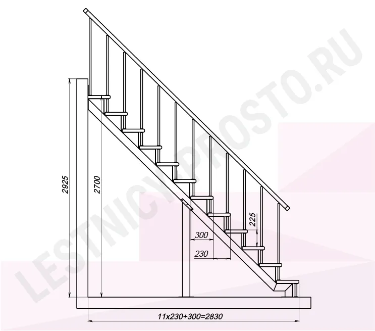 Лестница PROSTO MONO прямая, h292.5 см, ступени бук