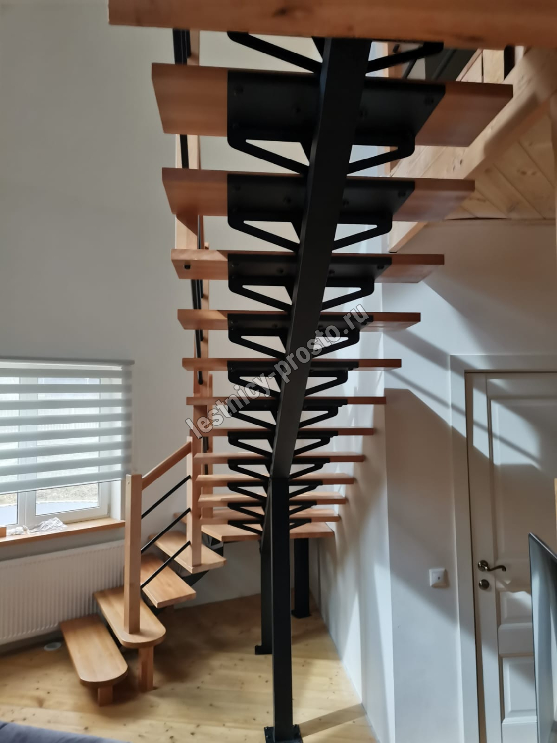 Конструкция представляет собой стальной монокосоур, на который крепятся ступени.