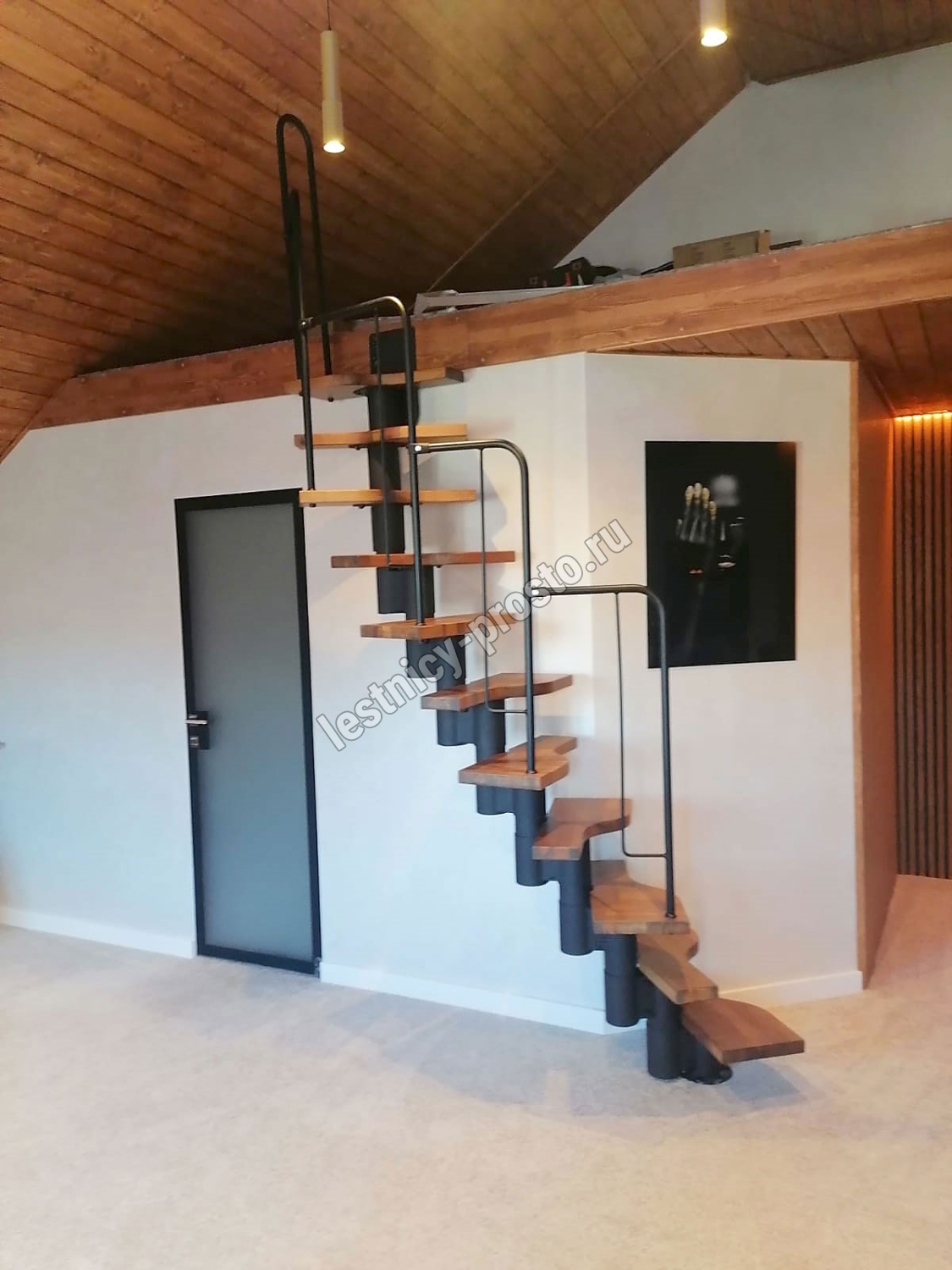 Лестница Prosto Urban Black гусиный шаг 700 мм, h180-264 см (10 ступеней), ясень