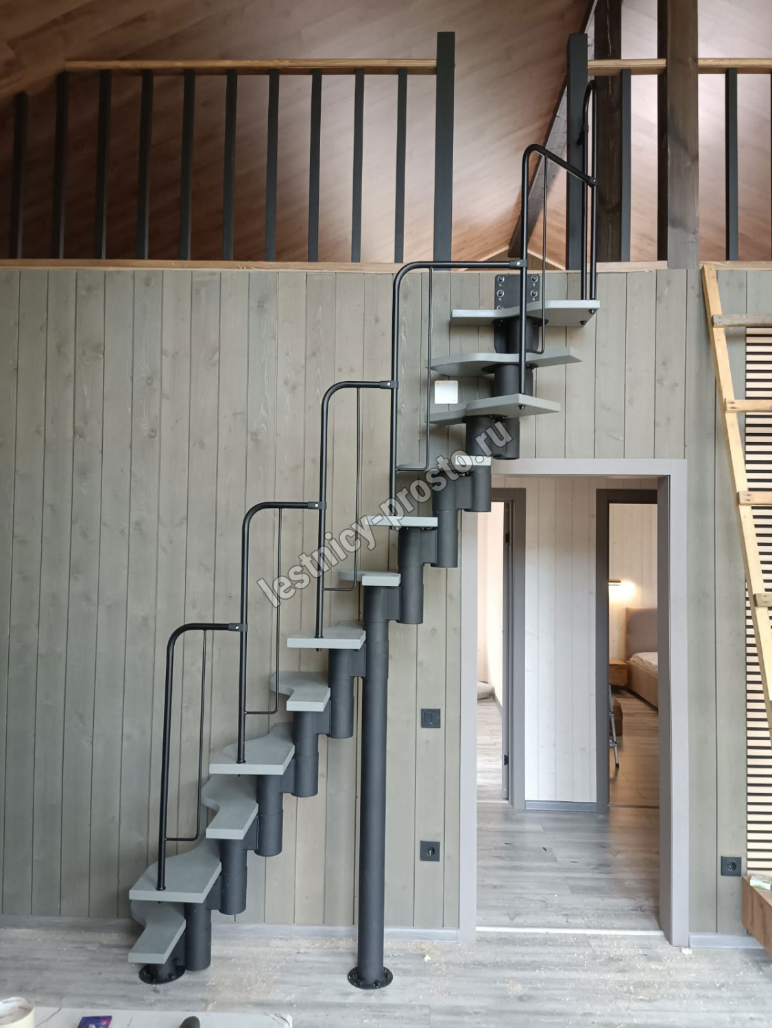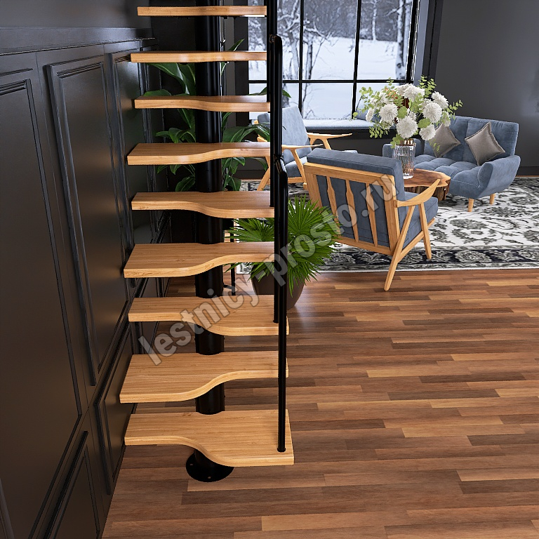 Лестница Prosto Urban Black гусиный шаг 700 мм, h216-312 см (12 ступеней), ясень