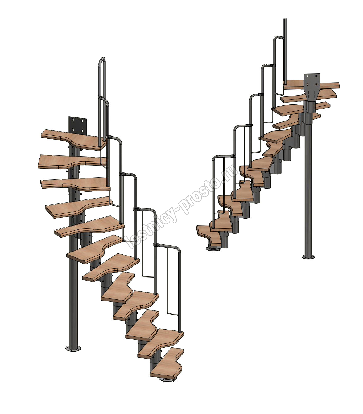 - Регулируемый по высоте в пределах 180-240 мм модуль. Большой диаметр и толщина металла деталей обеспечивают жесткость и прочность конструкции. Регулировка каждого модуля по высоте позволяет легко приспособить лестницу под ваше помещение.