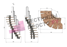 | Лестница Prosto Urban Black гусиный шаг 700 мм, h216-312 см (12 ступеней), дуб |