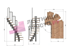 | Лестница Prosto Urban Black гусиный шаг 700 мм, h234-336 см (13 ступеней), бук |