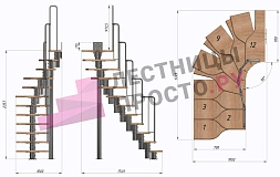 | Лестница Prosto Urban Black гусиный шаг 700 мм, h198-288 см (11 ступеней), бук |
