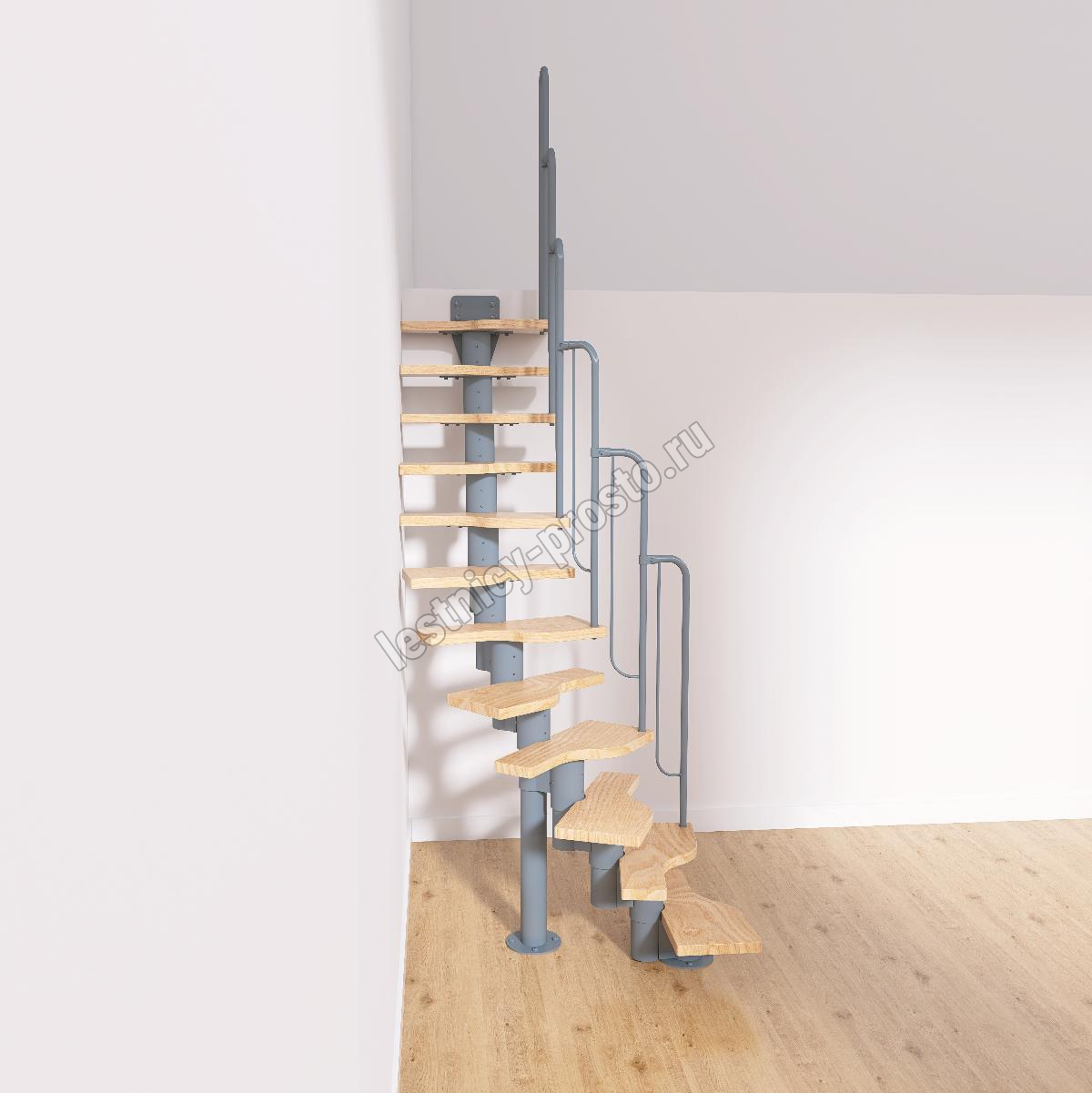 Лестница Prosto Urban Grey г-образная гусиный шаг 600 мм/ Ступени из берёзы мультиплекс