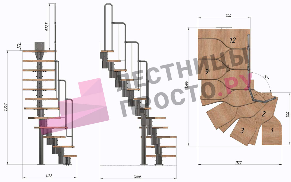 Высота лестницы 2160 - 3120 (12 ступеней) мм