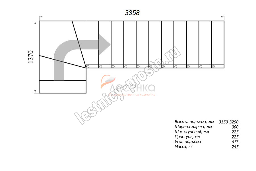 Модульная лестница Фаворит 225 3150-3290, Белый, Бук, Нержавеющая сталь