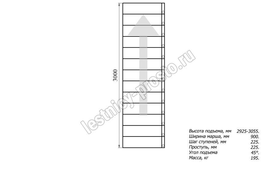 Модульная лестница Стандарт 2925-3055, Черный, Лиственница, Нержавеющая сталь