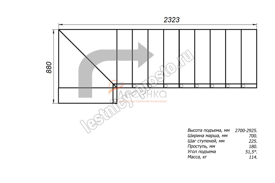 Высота лестницы 2700 - 2925 мм