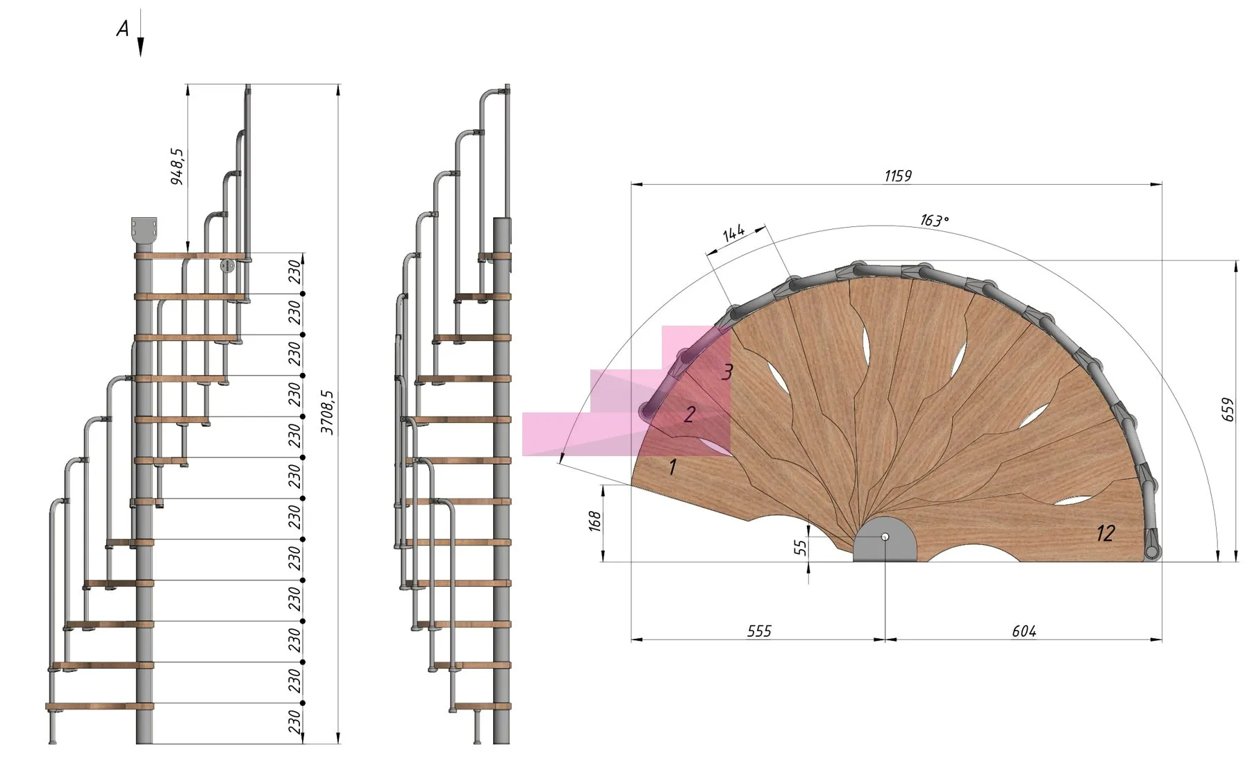 Высота лестницы 2760 - 2990 (12 ступеней) мм