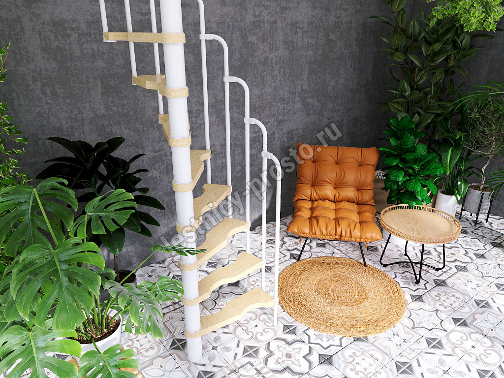 Винтовая лестница PROSTO MINI белая, 60×120 см, h299-322 см