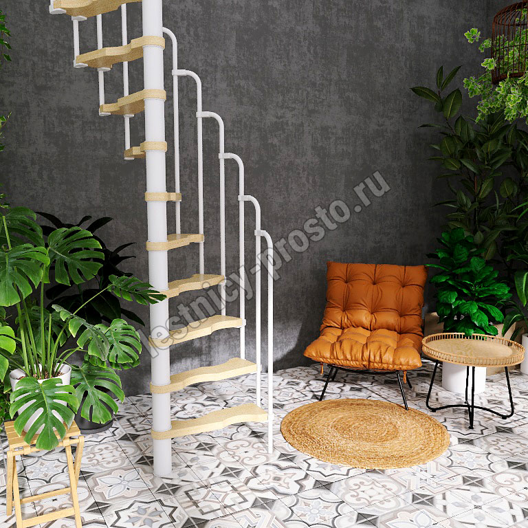 Винтовая лестница PROSTO MINI белая, 60×120 см, h322-345 см