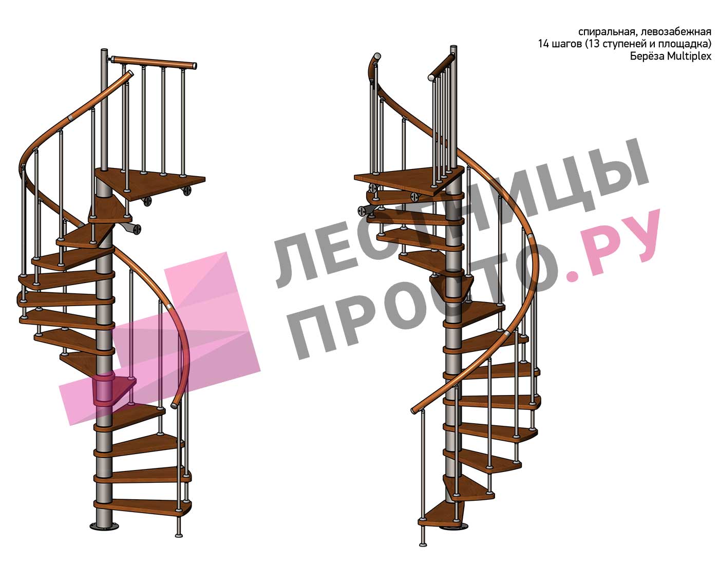 Ширина ступени между центральной колонной и поручнем ≈ 58 см.