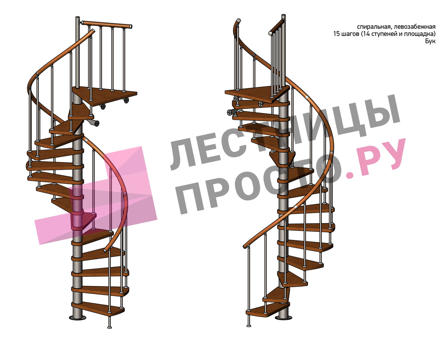 Левая, d=140см, 14 ступеней + площадка