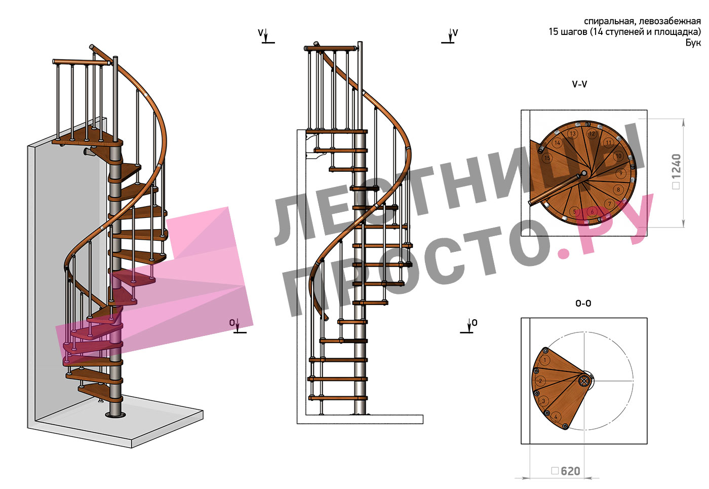 Винтовая лестница Prosto Spiral White D160см, h282.2-326,3 см, бук |