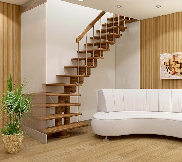 Ступени лестницы изготовлены из бука по технологии MULTIPLEX и покрыты износостойким защитным лаком.