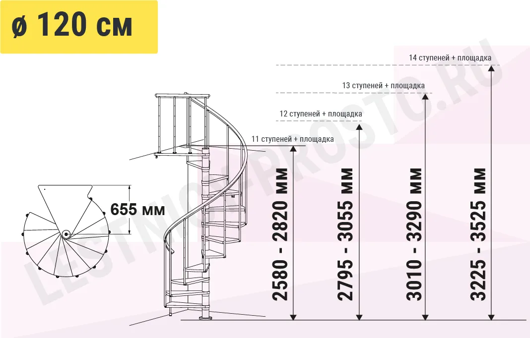 Высота лестницы 2580 - 3525 мм
