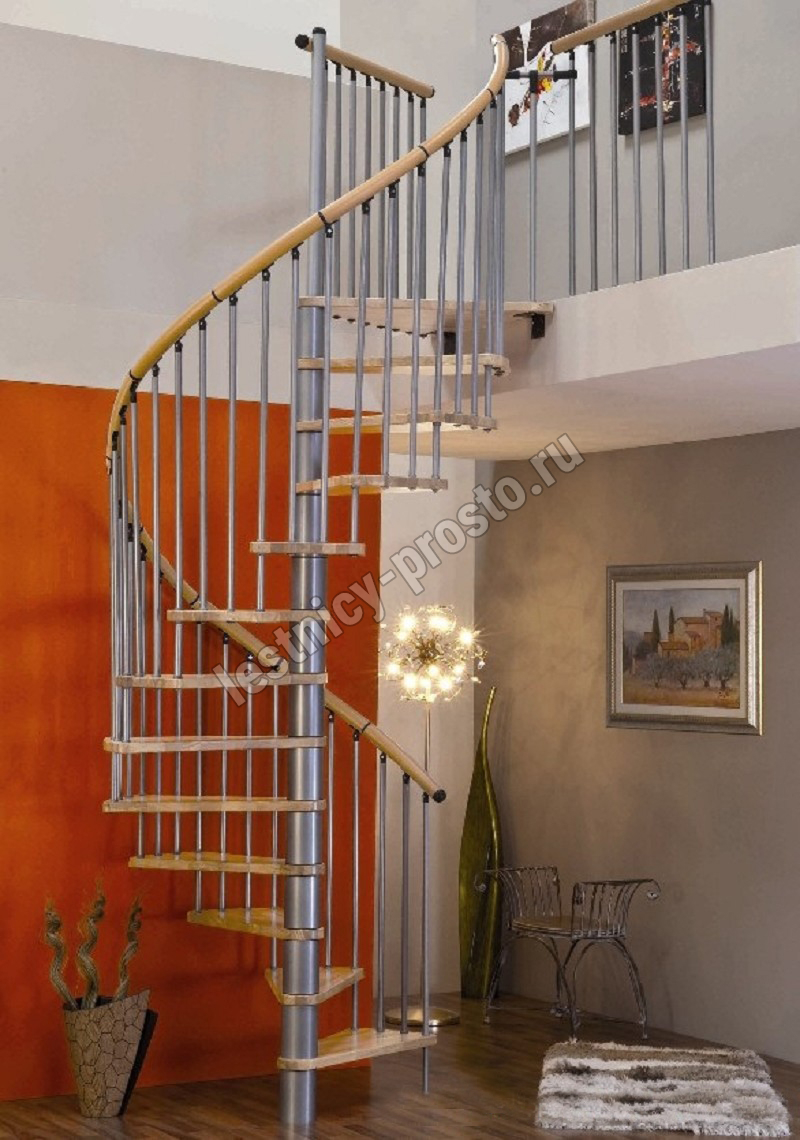 Винтовая лестница SPIRAL WOOD d120 см, серебро, лакированный бук