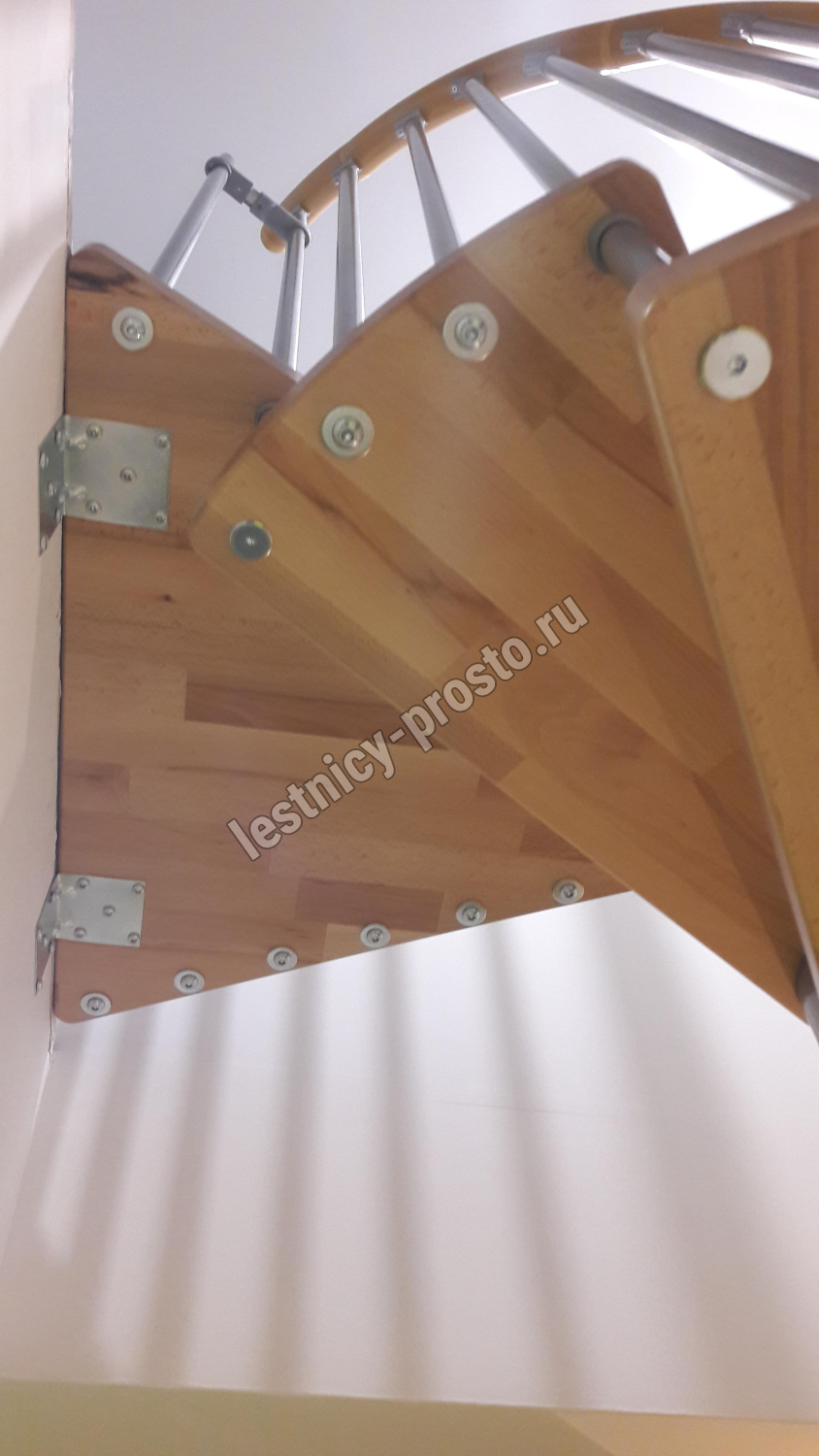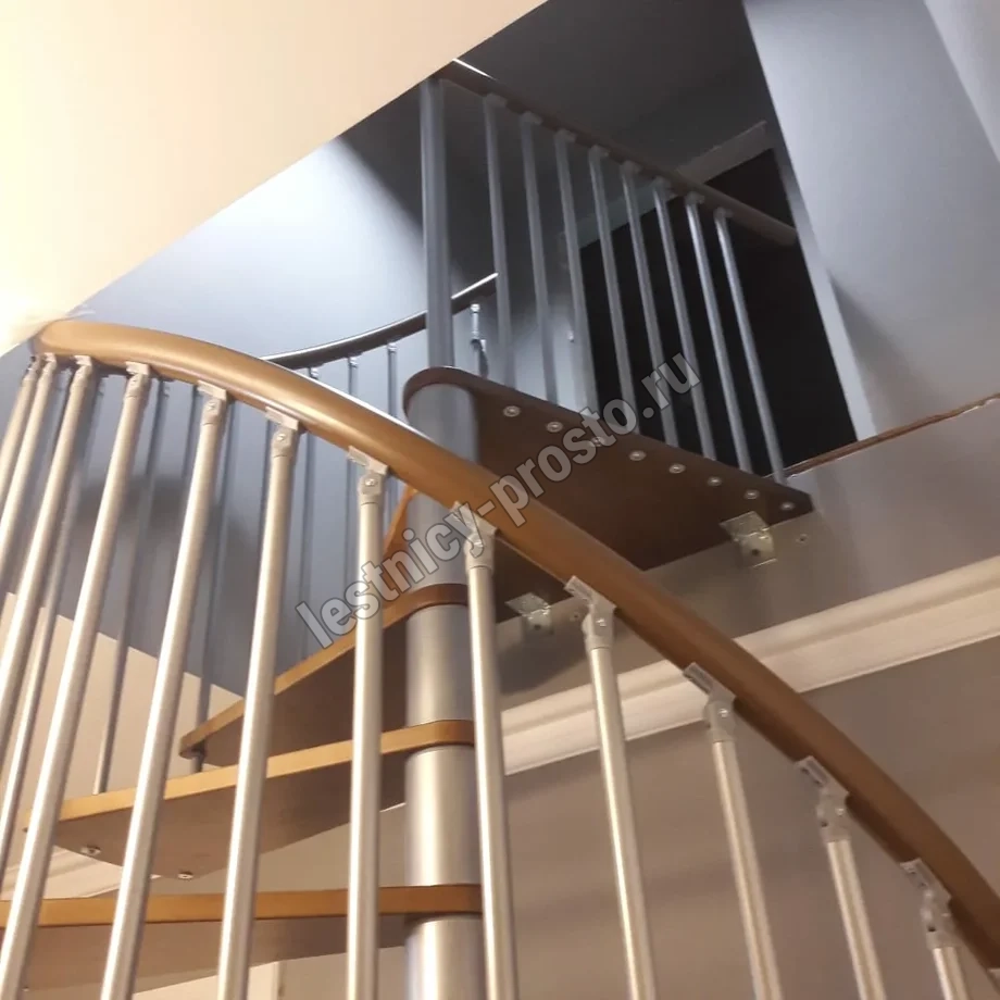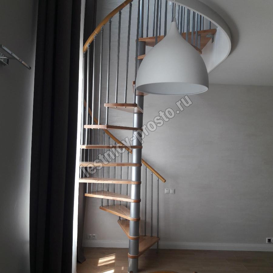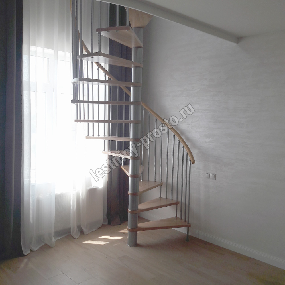 Винтовая лестница SPIRAL WOOD d140 см, серебро, лакированный бук