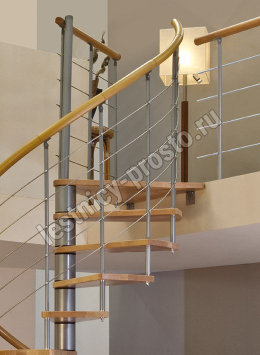 Винтовая лестница Venezia d140 см, серебро, бук лакированный