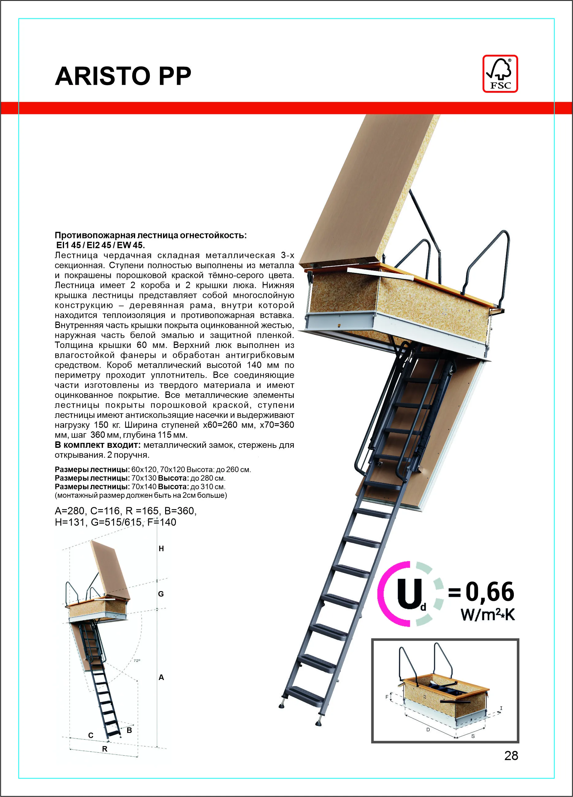 Ступени лестницы покрыты специальными накладками из износостойкого антискользящего материала. Площадка лестницы имеет универсальную форму, позволяющую встраивать лестницу в потолочные отверстия любой формы и размера. Высота лестницы регулируется при установке. С помощью специальных дополнительных секций, высоту лестницы можно увеличить до 3760 мм. (Секции покупаются отдельно). Во время сборки, задаётся необходимое направление поворота лестницы. CIVIK изготовлен из штампованной стали, окрашен в черный цвет (RAL 9017), белый (RAL 9010) или серый (RAL 9006). Отделка лестницы всегда в черном цвете. Перила из полиуретана с алюминиевым сердечником черного цвета, как и износостойкие нескользящие панели на ступенях.