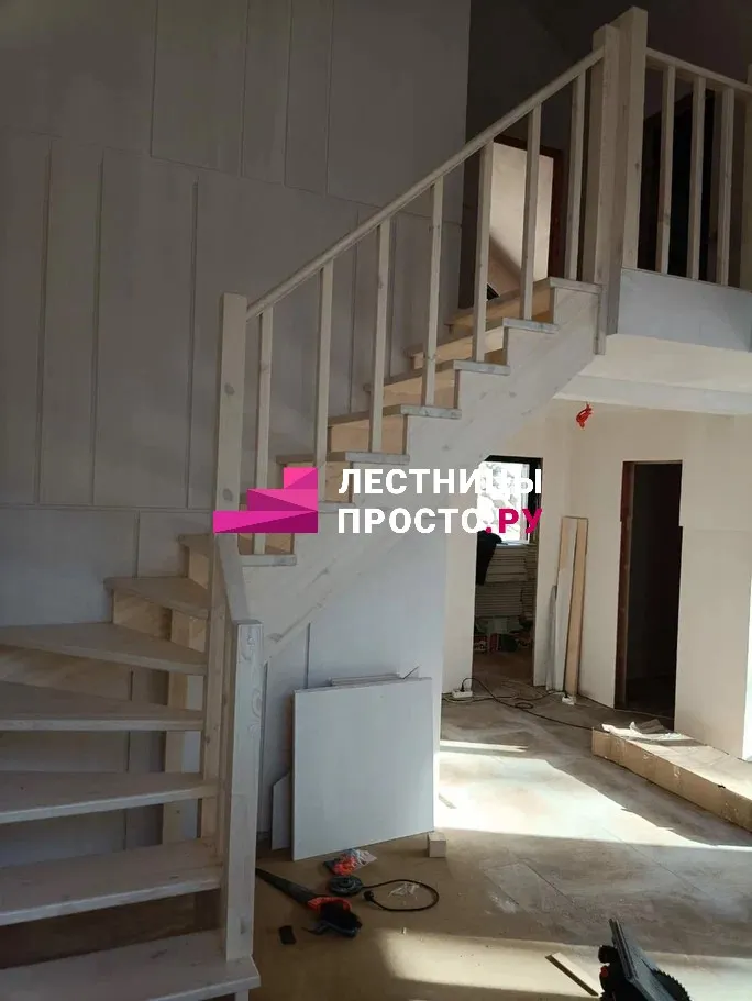 Лестница из сосны с поворотом без покраски